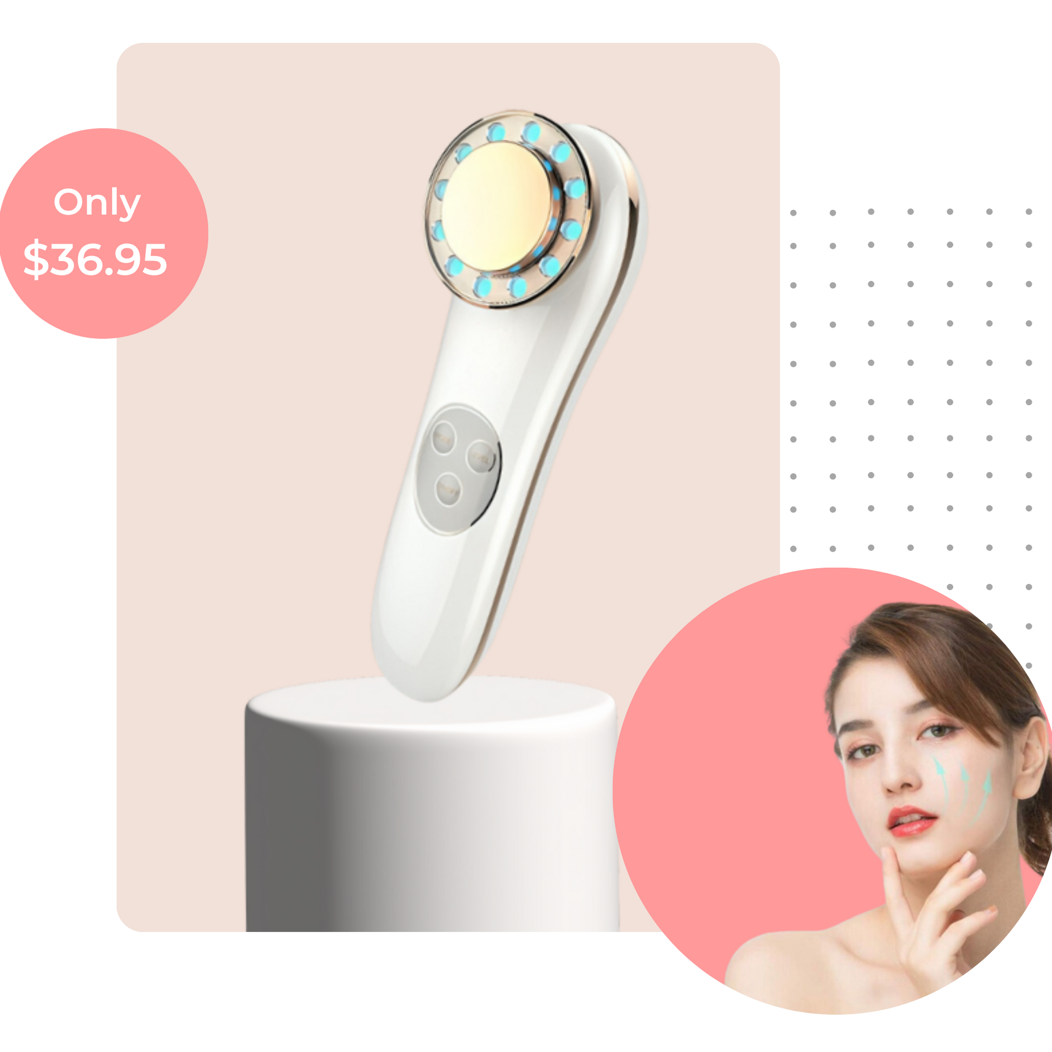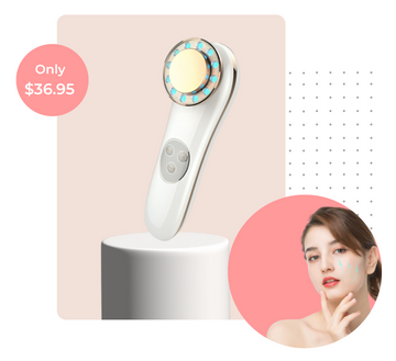 Our advanced facial massager offers a comprehensive skincare solution, utilizing ion charge technology, light therapy, microcurrent stimulation, and gentle heat to deeply cleanse, nourish, and lift your skin.